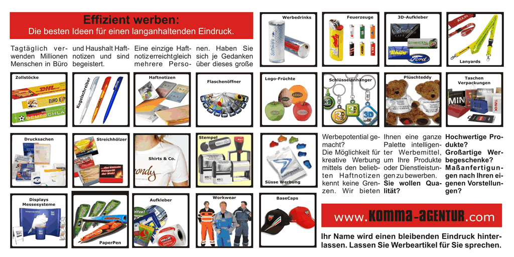 Fordern Sie uns noch heute, wir beraten Sie bei der Auswahl der passenden Werbemittel.